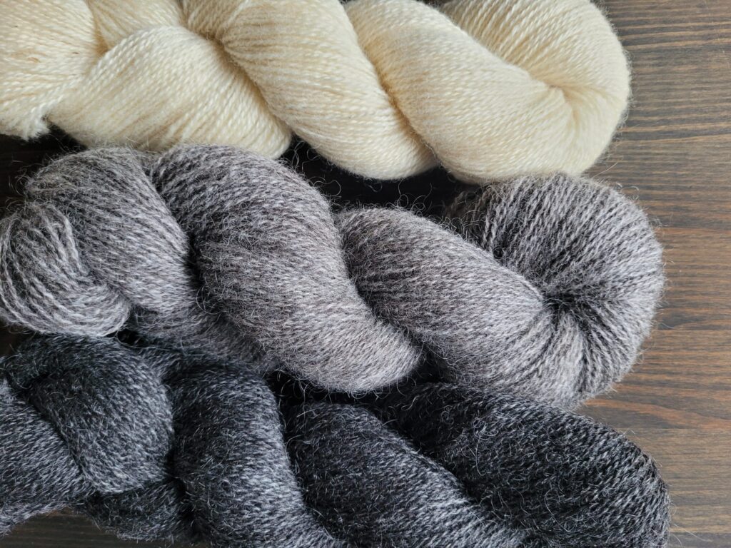 Salg Garn Hvidt garn: ca 80% wensleydale uld fra egne får og ca 20% merino Lysegråt garn: ca 80% blandet af wensleydale, sånelam, karakul, rygja, gotlænder, mohair og ca 20 % merino Mørkegråt garn: ca 80% gotlænder lammeuld og ca 20% sort merino Alt garnet er spundet på Hjelholt Uldspinderi og har en løbelængde på 400 meter pr 100 gr.Pris 100 kr pr 100 gr. Farvet garn:Jeg farver mit eget garn med i alverdens festlige farver med lanasyn. Garnet har en løbelængde på 400 meter pr 100 grPris 125 kr pr 100 gr.